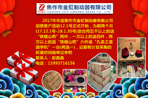2017年年底焦作市金虹制動(dòng)器有限公司 回饋客戶(hù)活動(dòng)12.1號(hào)正式開(kāi)始
